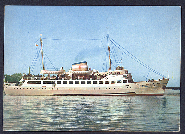 | Statek wycieczkowy m/s "Mazowsze". Pocztówka wydana przez Biuro Wydawnicze"RUCH" przed rokiem 1963. Fot. J.Uklejewski. Ze zbiorów autora. |